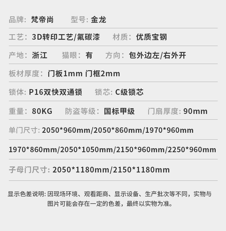 梵帝尚甲级防盗门家用入户门安全智能指纹解锁高档轻奢定制进户门 成都同城达 免费拆旧门/打胶 五种锁具可选